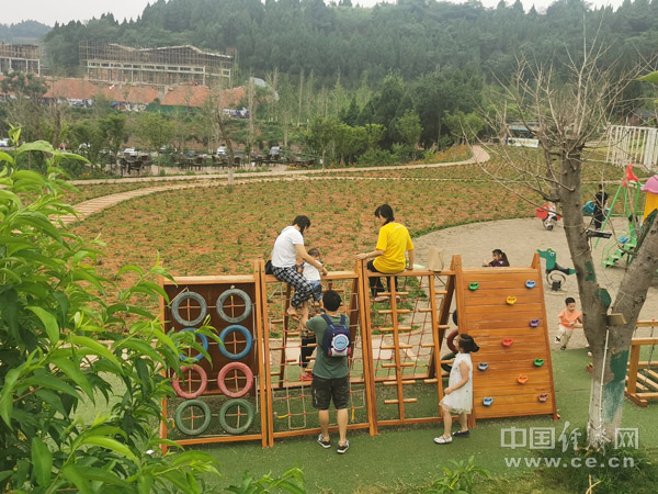 家长和孩子在田边玩耍。(中国经济网记者 邓浩/摄)