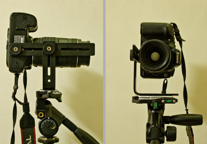 5.在云台上向前或向后调整相机的位置,然后继续左右转动观察,直至没有位移变化为止。